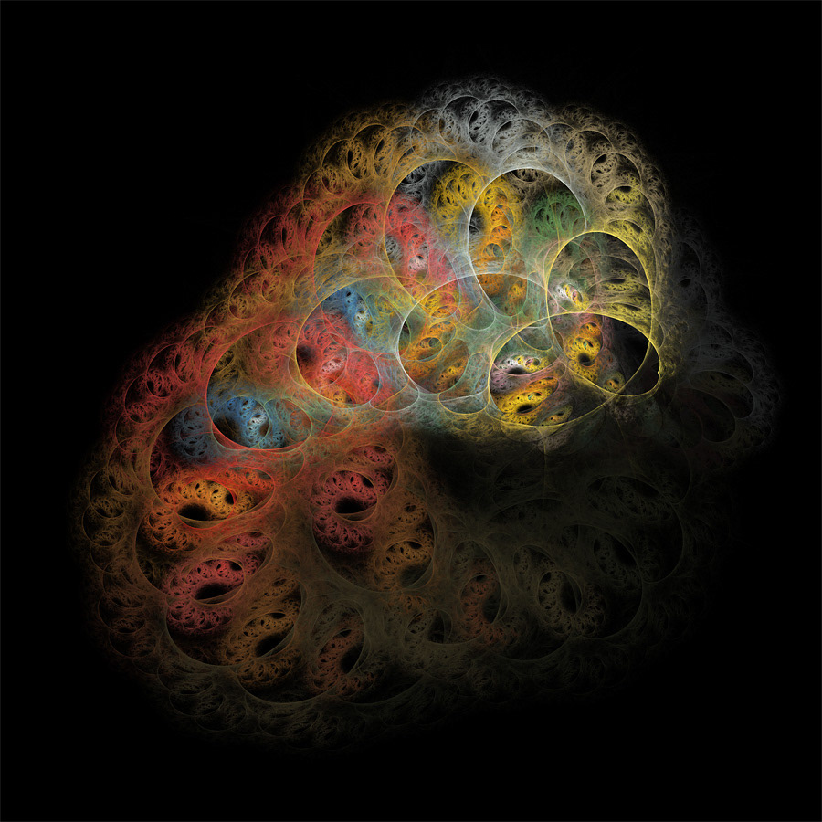 Dreiundzwanzig herbeigeträumte Organismen in fraktaler Erscheinungsform.